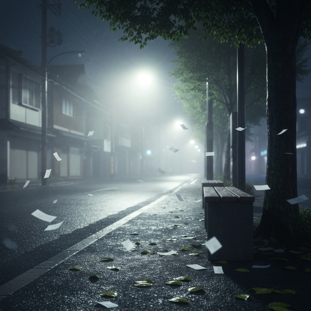 電話ボックスのランプは、しばらく不規則に瞬き続けた。古い機械の癖なのだろうが、その明滅が、広瀬の躊躇を代弁しているように見えた。 「……もう少しだけ歩こうか」 彼がそう言って坂の先を指した。私は黙ってうなずく。 道の先は住宅街に向かう細い並木道で、雨粒を含んだ葉が、街灯の光を吸って淡く輝いていた。アスファルトから立ち上る湿気が足元にまとわりつき、靴底が少し重たく感じた。 広瀬は、しばらく何も言わなかった。歩くたび、ポケットの中で紙が擦れるかすかな音がした。その音だけが、私の呼吸のリズムを乱した。 「さっきのさ」 広瀬は急に足を止めた。並木の影が彼の表情に薄い縞を落とす。 「渡そうとしてたもの……もう隠せないかもしれない」 胸の奥が一瞬だけ詰まった。 「見せてよ」 自分でも驚くほど静かな声が出た。 彼はゆっくりとポケットから紙片を取り出した。湿気を吸った角が、少しだけ丸くなっていた。 差し出されたそれを手に取った瞬間、指先に微かな震えが伝わった。 印字された文字を見た途端、呼吸が止まる。 そこには、私の名前があった。 そして、その横に見慣れない肩書きが添えられていた。 研修参加者用の受付票だった。しかも—— 「海外?」 声がかすれた。 広瀬は、眉の端をほんの少し上げた。 「推薦したの、俺なんだ。相沢さんなら行けると思った。でも……今日のことがあって、渡すのが怖かった」 夜風が、二人の間の紙をふわりと揺らした。 「驚いたよね」 彼は苦い笑みを浮かべた。「でも、これ……ずっと渡したかった」 私の手の中で紙が震えていたのは、風のせいだけではなかった。 言葉を探す間、広瀬がそっと視線を落とした。 「もし、迷惑だったら……捨てていいよ」 その一言が、思っていた以上に胸に響いた。 捨てる。 その二文字が、なぜか遠くに感じられた。 紙を見つめながら、私は次の言葉を決めきれないまま、ゆっくりと息を吸った。 並木の葉が静かに揺れ、街灯の光がその影を細かく散らした。 この先、何かが変わる気配だけが、確かに夜気の中に漂っていた。